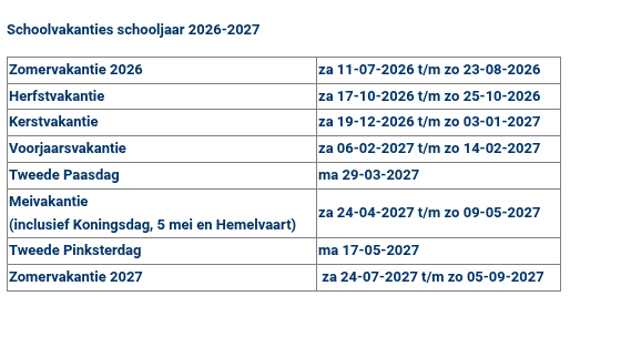 Schoolvakanties schooljaar 2026-2027